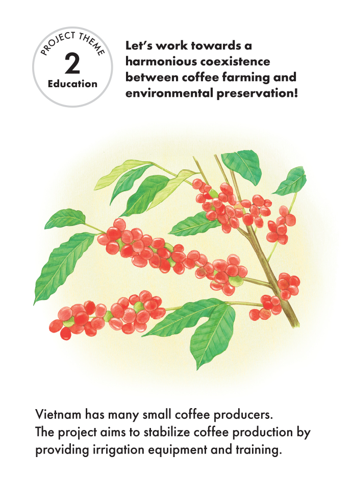 We ask our customers who visit the store to decide sustainable projects for famers by their voting and a part of our sales contribute to carrying out the projects.